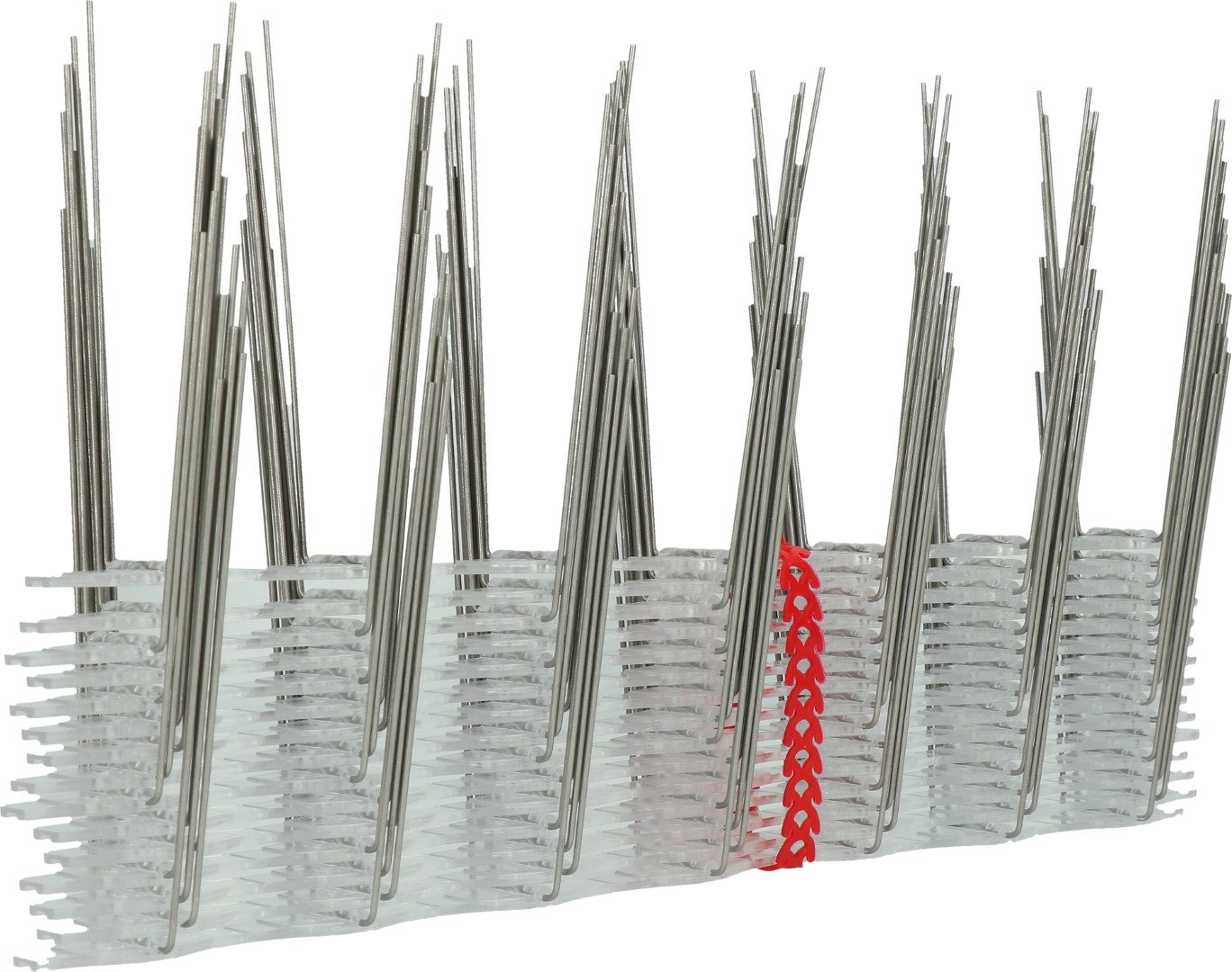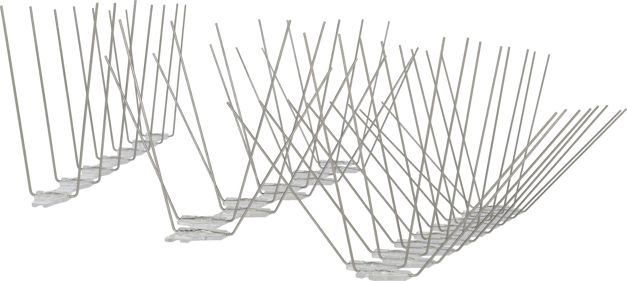 Spikes zur professionellen Taubenabwehr. Die Spitzen (ø 1,4 mm) aus rostfreiem Stahl sind in eine Polycarbonatsohle eingeschmolzen. Das Material ist UV-Geschützt und sehr dauerhaft. Die Elemente sind je nach Untergrund sowohl kleb-, wie schraub- oder nagelbar. Die spezielle Rille in die Sohle macht das Auftragen vom Kleber einfach.