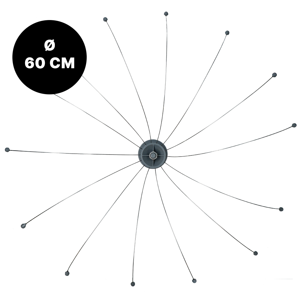 Wirksames und hochwertiges Vogelabwehrsystem gegen Vögel wie Tauben, Möwen, Stare, Krähen, Amseln, usw. Da sich die Drähte im Wind drehen, werden Vögel daran gehindert, auf Oberflächen zu landen oder zu nisten.