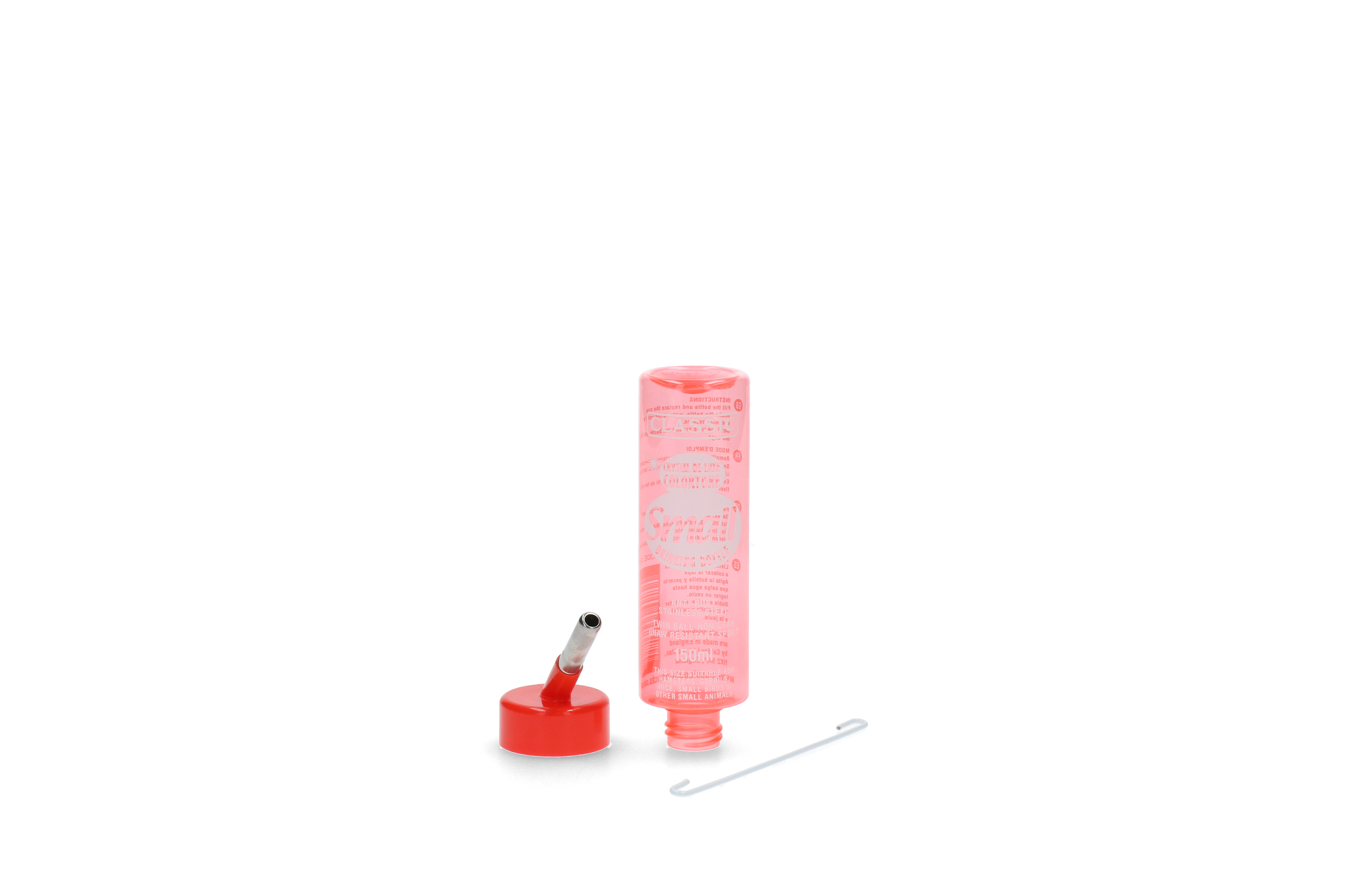 Schütteln Sie die Flasche, einige Tropfen können fallen bis ein Vakuum entsteht.