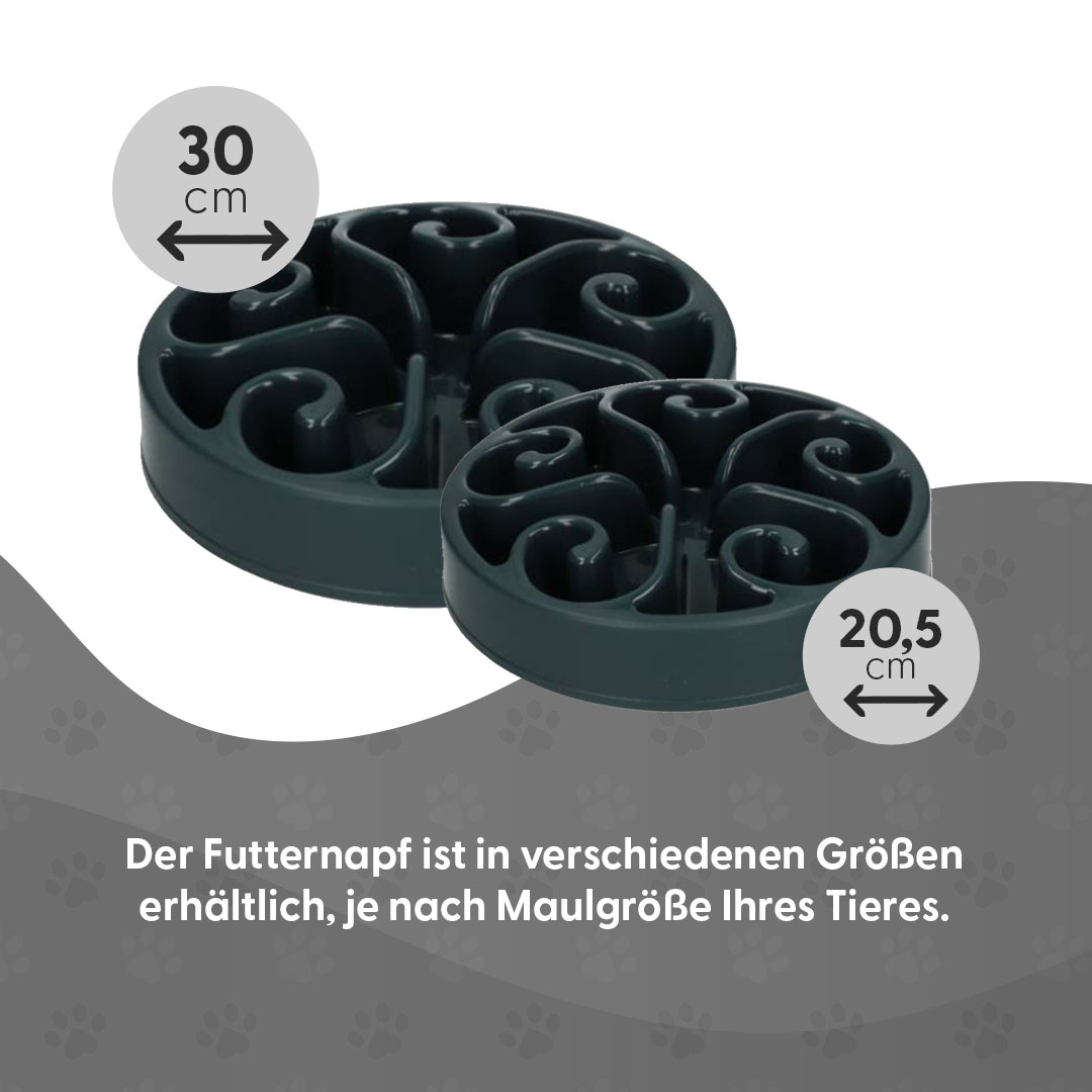 Mit dem Eat Slow Live Longer Original Langsamfresser gehört das Verschlingen der Vergangenheit an! Dieser Futternapf mit Spiralmuster macht es dem Hund oder der Katze schwerer, das Trockenfutter zu erreichen. So nimmt das Tier kleinere Bissen, frisst langsamer und kaut besser. Der Langsamfresser hat rutschfeste Füße auf dem Boden und ist spülmaschinenfest.