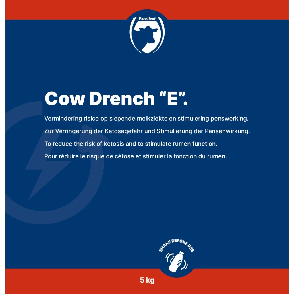 1 kg Cow Drench E in 20 Liter lauwarmem Wasser auflösen und verabreichen über Kuh Drencher (COWD000) oder Drenchmate . Wiederholen Sie diese Dosierung eventuell nach 24 und 48 Stunden.