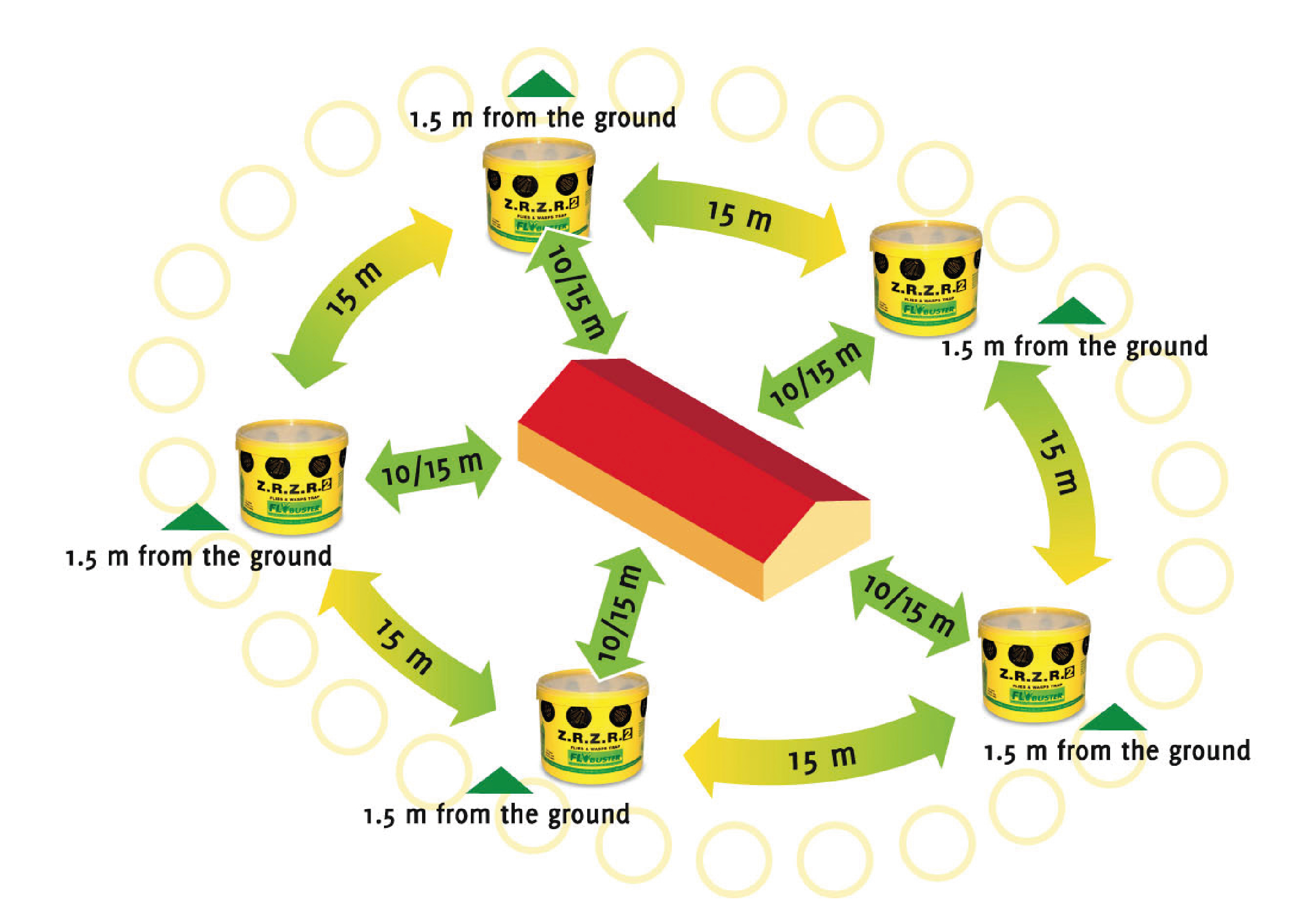 Tagsüber sind die Fliegen in Ställen, Scheunen und / oder Gebäude auf der Suche nach Nahrung (Dünger, Tierfutter und organische Substanzen im Allgemeinen), über Nacht suchen die Fliegen nach perfekten Bedingungen zum ausruhen. Beim Übergang von Tag zu Nacht wurden die Fliegen von dem Geruch von Flybuster Lockmittel angezogen und fliegen in die Falle. Dank den speziellen "ein Weg" Öffnungen, die um den Eimer angeordnet sind, können die Fliegen sobald sie einmal im Inneren sind, nicht mehr raus.