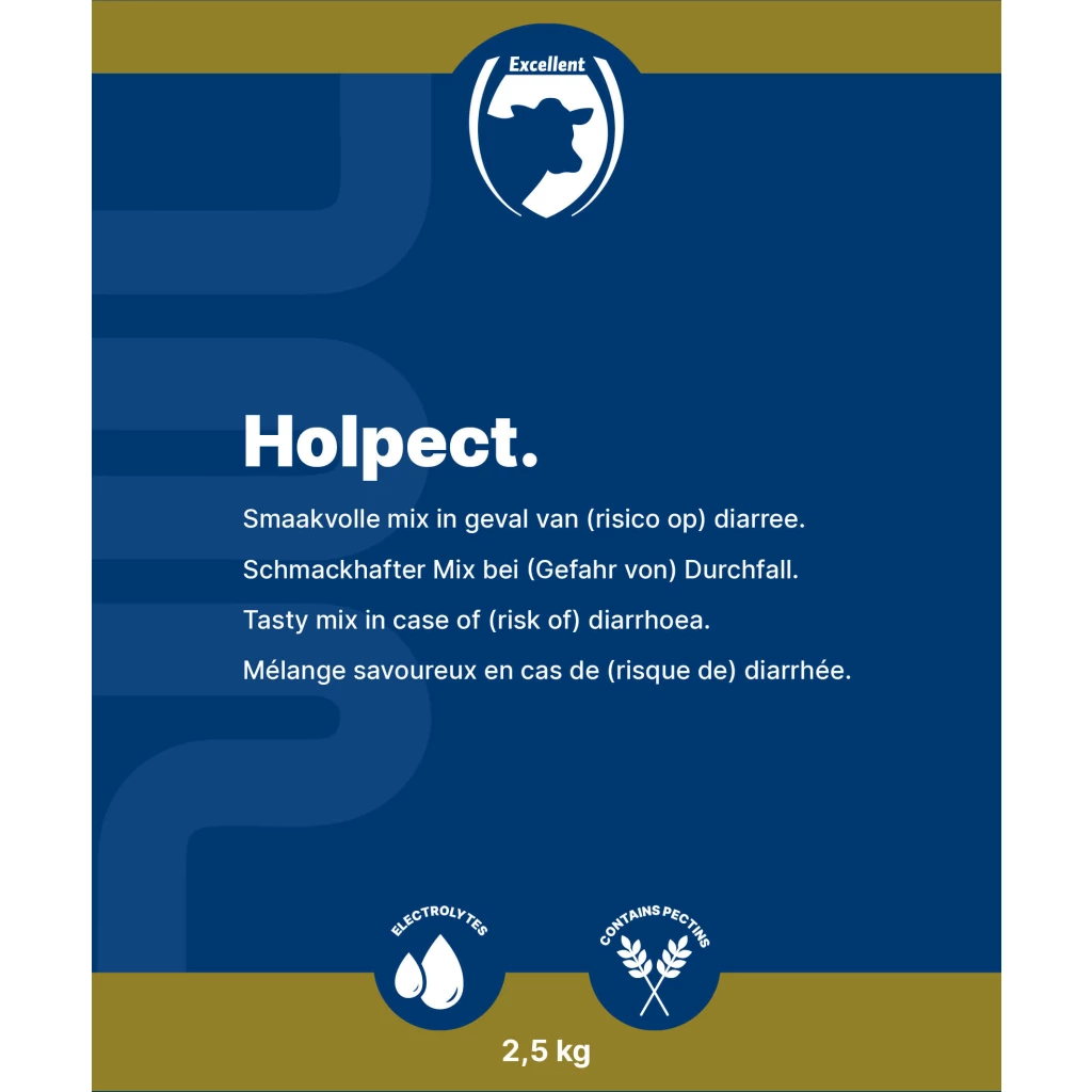 2 bis 3 Mal täglich 1 g Holpect pro kg LG in 2 l Wasser auflösen (50-70 g/Kalb/Futter).