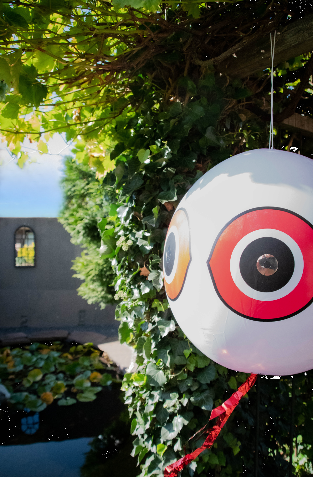 Glänzende Girlanden an der Unterseite des Ballons verstärken die erschreckende Wirkung.