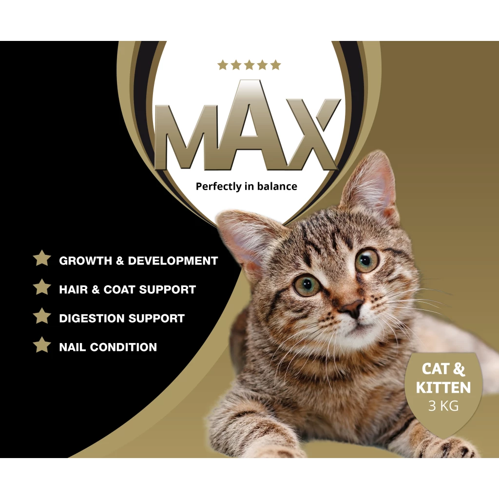 Max Cat and Kitten ist ein Super-Premium-Plus-Futter in Pelletform und enthält hochwertige Zutaten. Durch die Zugabe des Nahrungsergänzungsmittels Biozin ist Max Cat and Kitten das kompletteste Futter für Katzen und Kätzchen.